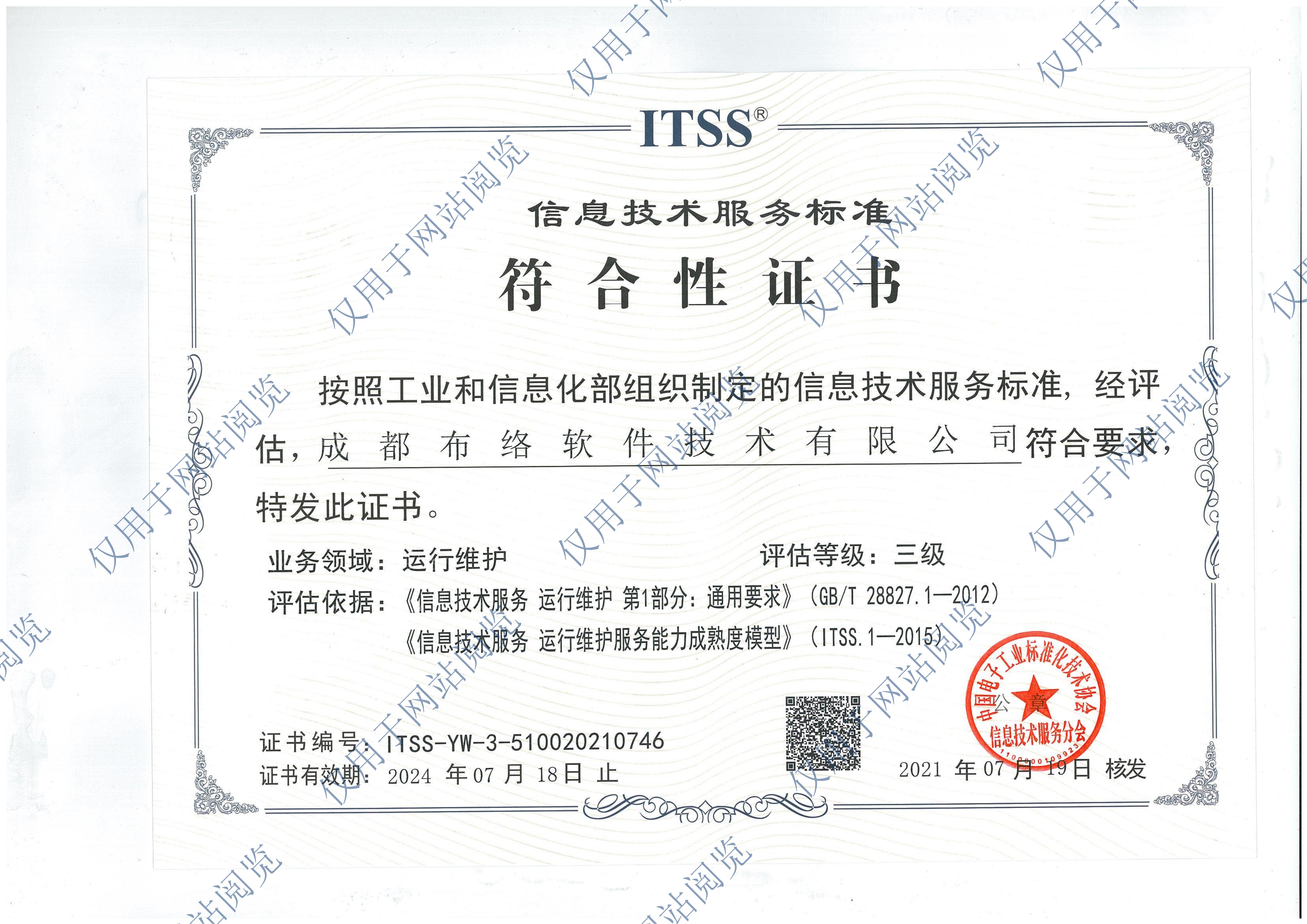 ITSS信息技術(shù)服務(wù)標(biāo)準(zhǔn)符合性證書(shū)