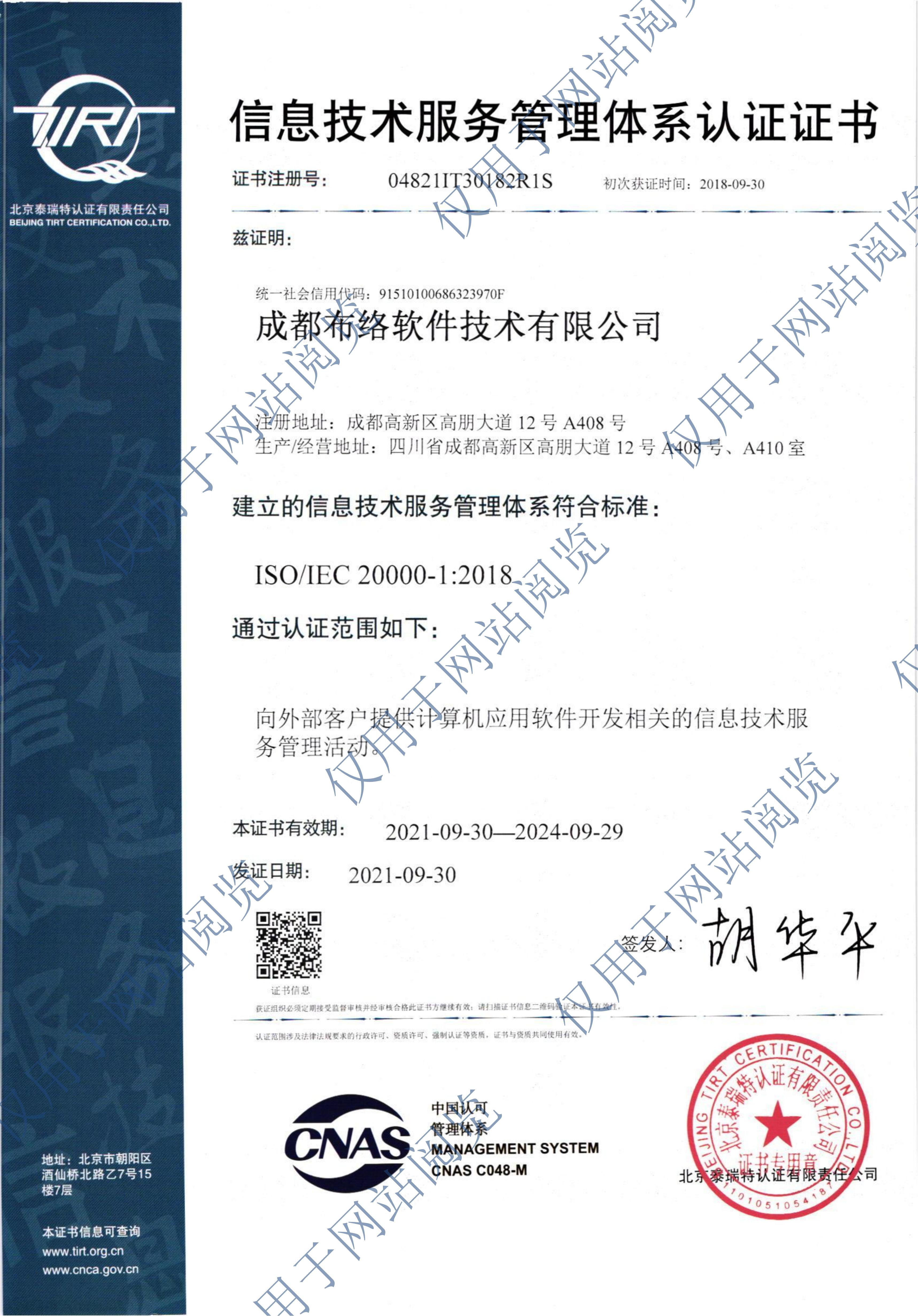 信息技術(shù)服務(wù)管理體系認(rèn)證證書(shū)